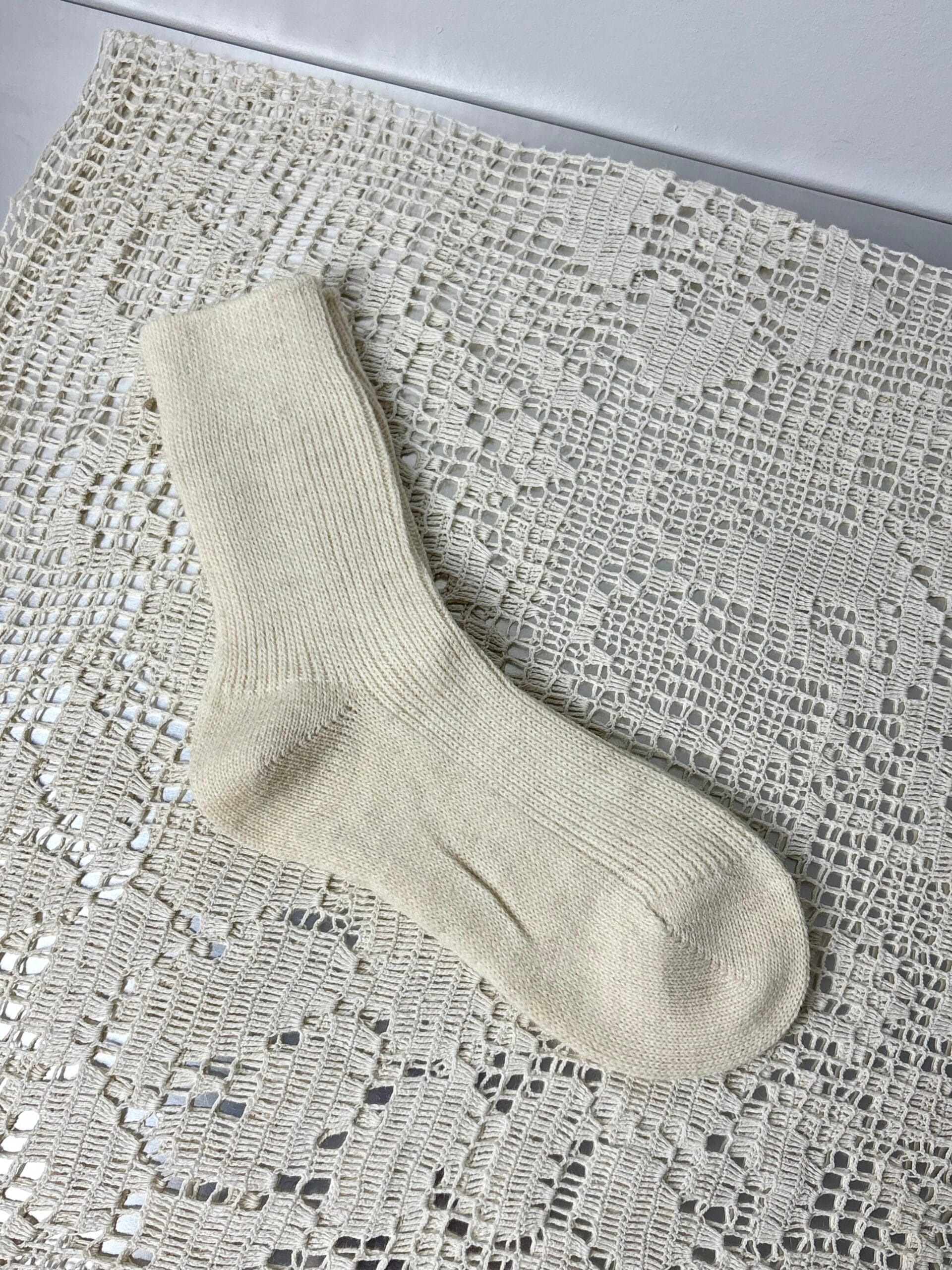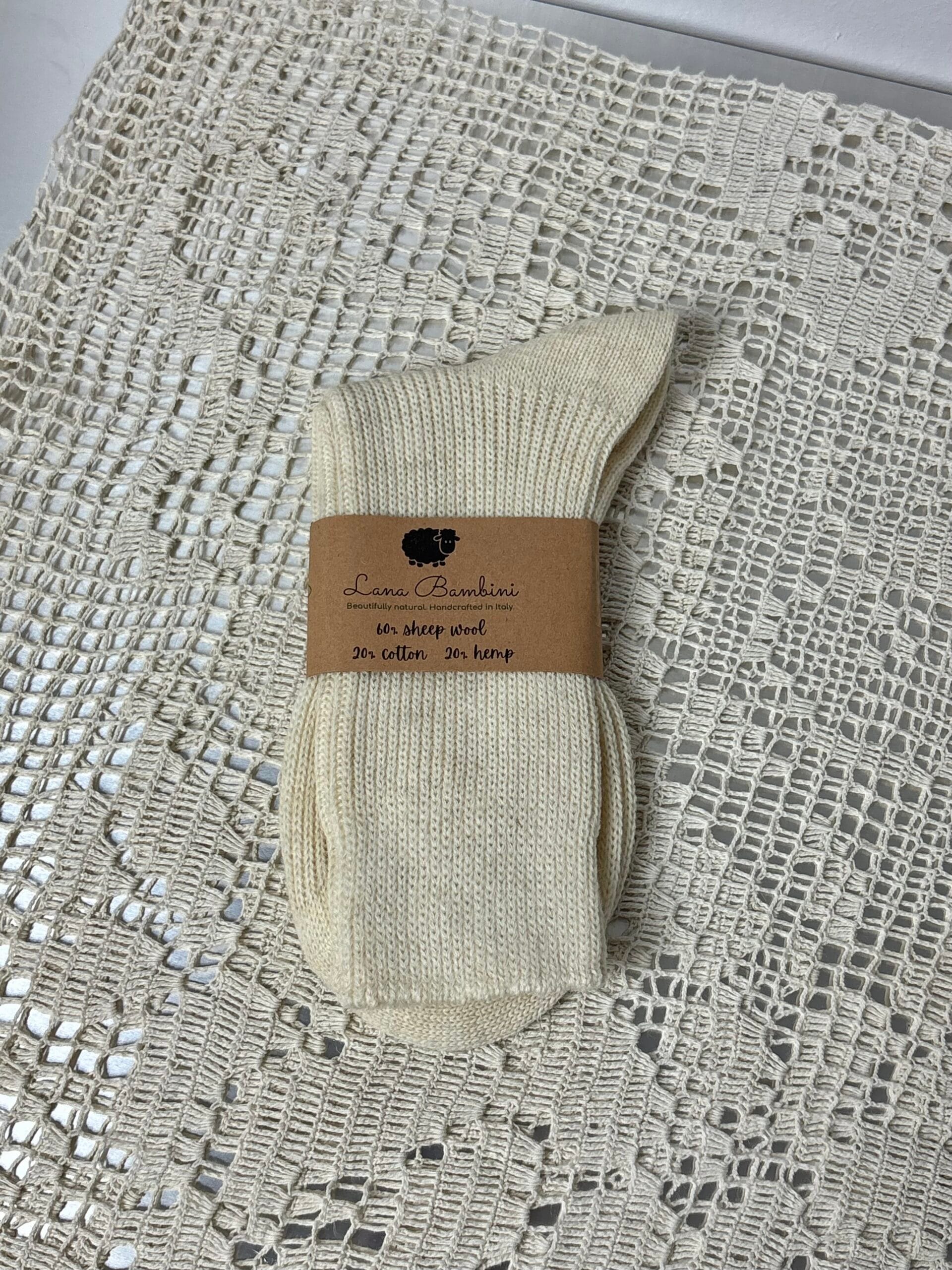 Off-White Wool, Cotton & Hemp Blend Sock curating a comfortable but also durable item for everyday wear. Medium thickness. Handcrafted in a small, family-run atelier in Lombardy, Northern Italy.